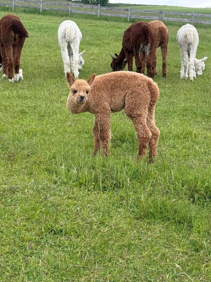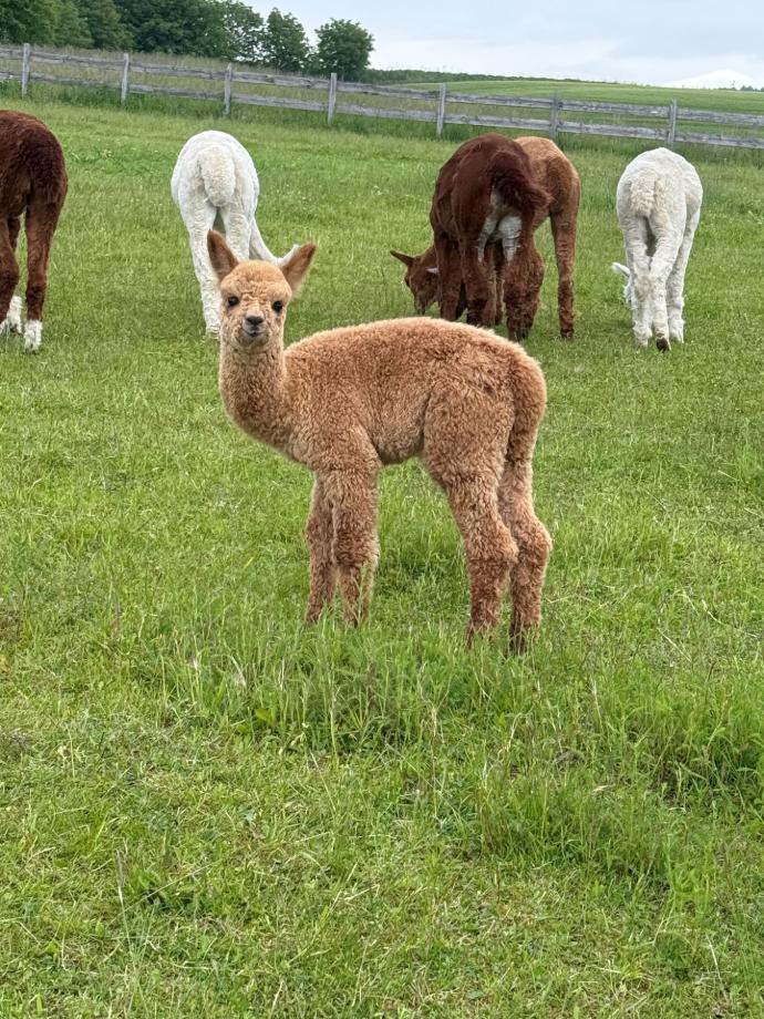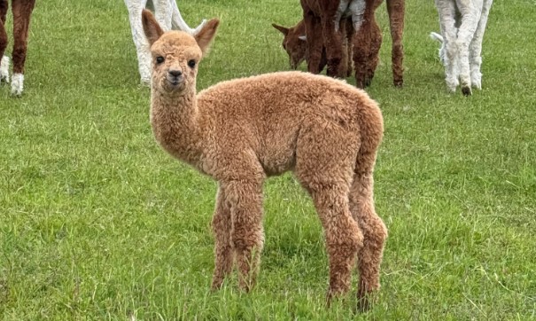 Sein mittel-fawnfarbenes Vlies schimmert wie goldener Honig in der Sonne – warm, weich und edel. Es unterstreicht seine sanfte Erscheinung und verleiht ihm eine fast märchenhafte Ausstrahlung.