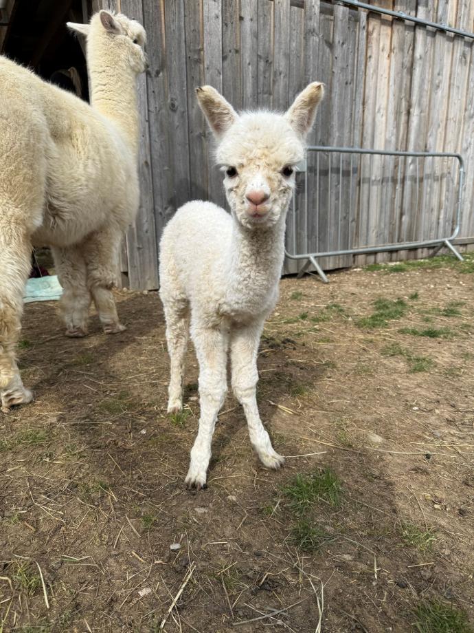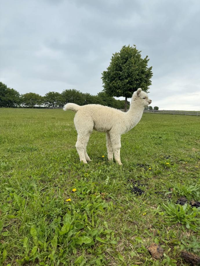 Ihr reinweißes, seidiges Vlies leuchtet im Sonnenlicht wie frischer Schnee und unterstreicht ihre elegante Erscheinung. Doch hinter dem sanften Blick und dem ruhigen Wesen steckt weit mehr, als man auf den ersten Blick vermuten würde.